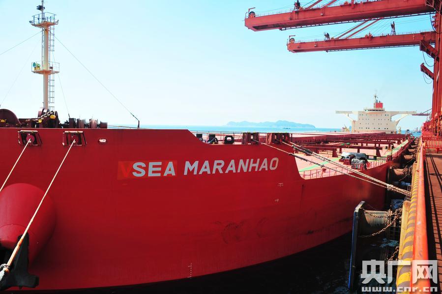 上午10點,滿載著40萬噸進口鐵礦石的超大型鐵礦石船“馬蘭豪”號緩緩靠泊大連港礦石碼頭,這艘“海上巨無霸”船長361米、船寬65米、吃水深度23米,是目前靠泊我國沿海港口單船載重噸量最大的鐵礦石船。此次到港的40萬噸進口礦石,將轉運至遼寧和河北的大型鋼廠。據(jù)測算,與現(xiàn)行的18萬噸級主流鐵礦石船相比,用40萬噸級鐵礦石船從巴西運輸鐵礦石到中國,每噸運費可節(jié)省4至6美元,大大降低了鐵礦石到岸價和鋼廠的運營成本。