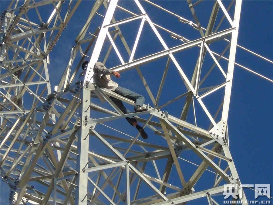一男子被困在220千伏輸電塔(趙啟智攝)