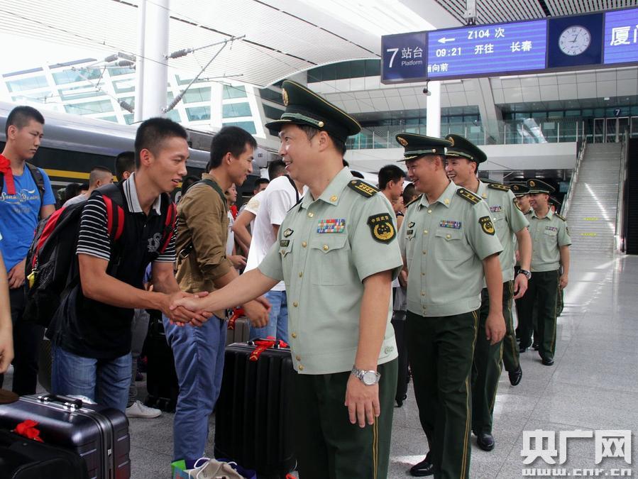 央廣網(wǎng)廈門9月6日消息(記者陳庚 通訊員黃勛 張英力)昔日立志從軍保家衛(wèi)國,今朝榮歸故里再創(chuàng)輝煌。9月5日,伴隨著一首首軍營老歌《我的老班長》、《老兵,你還記得嗎?》、《送戰(zhàn)友》……,武警廈門支隊2015年度秋季退伍老兵踏上返鄉(xiāng)征程。