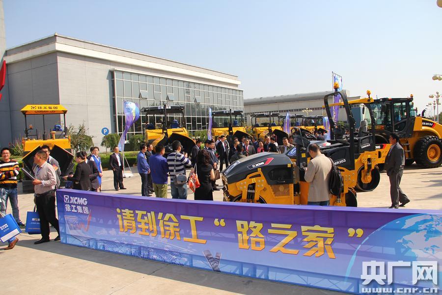 領(lǐng)導(dǎo)、嘉賓攜手客戶參觀徐工成套筑養(yǎng)護(hù)機械產(chǎn)品(央廣網(wǎng)記者 楊守華 攝)