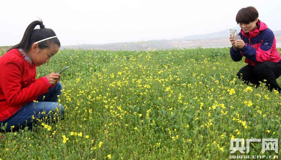 游客正在克拉瑪依千畝油菜地拍攝油菜花(央廣網(wǎng)發(fā) 周建玲攝)