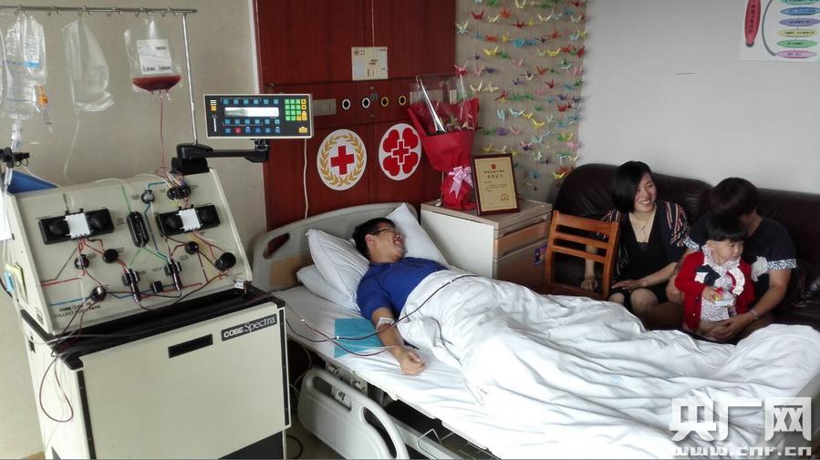 慈溪市紅十字會副秘書長胡峻箐在浙江省中醫(yī)院進(jìn)行造血干細(xì)胞采集