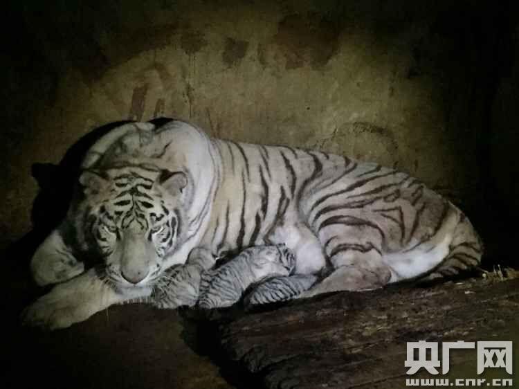 央廣網(wǎng)昆明10月27日消息(記者李健飛)10月25日凌晨,居住在云南野生動(dòng)物園獅虎山的1號(hào)白虎經(jīng)過2小時(shí)左右的生產(chǎn)竟產(chǎn)下5胞胎。據(jù)了解,這只白虎6歲半,已經(jīng)產(chǎn)過3胎小虎,每次2—3只,一次性生5只小虎在白虎中實(shí)屬少見。由于白虎媽媽母性極好,幼虎由媽媽親自撫養(yǎng),目前母子身體狀況良好,工作人員對(duì)其24小時(shí)監(jiān)控。