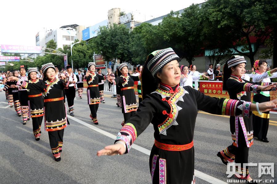 11月3日,云南省耿馬傣族佤族自治縣成立60周年慶祝大會舉行。傣、佤、拉祜、傈僳、德昂等各族人民穿起民族服飾盛裝,用民族音樂和舞蹈慶祝。(央廣網(wǎng)發(fā) 李騰飛 攝)