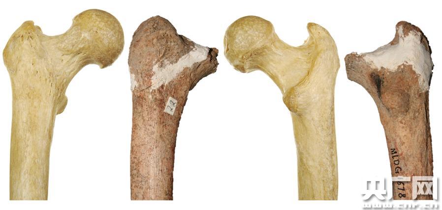 馬鹿洞股骨與現(xiàn)代人股骨對(duì)比 Darren Curnoe, Ji Xueping & Getty 拍攝制作(央廣網(wǎng)記者 李健飛 攝)