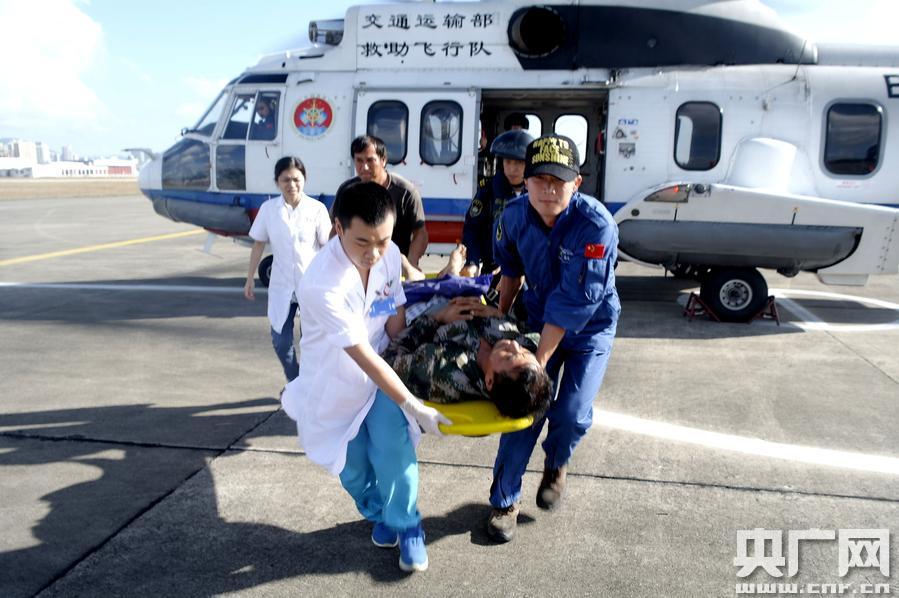 接信息后,南海第一救助飛行隊總值班室立即安排正在三亞基地值班待命的B-7137救助機(jī)組做好各項飛行準(zhǔn)備工作。13時14分,飛行計劃獲得軍民航批復(fù)后,B-7137救助直升機(jī)起飛前往出事海域。14時19分,救助直升機(jī)抵達(dá)現(xiàn)場海域,并很快發(fā)現(xiàn)了目標(biāo)漁船“瓊?cè)齺?1158”。經(jīng)一番空中偵察,機(jī)組人員協(xié)商后決定在船尾部實施救助作業(yè),很快,救生員在絞車手操控下順利下降到船尾。鑒于漁民為腿部骨折,為防止?jié)O民吊運(yùn)作業(yè)中二次受傷,決定采用擔(dān)架救援的方式。14時48分,B-7137救生機(jī)組默契配合下將受傷漁民成功接上直升機(jī)并返航。15時26分,B-7137直升機(jī)落地三亞關(guān)廂機(jī)場,隨后,120救護(hù)車將該受傷漁民送往三亞市425醫(yī)院救治。
