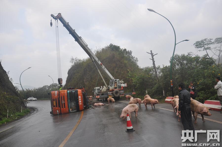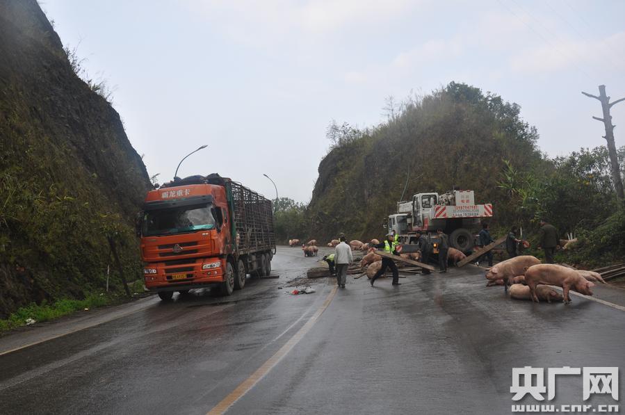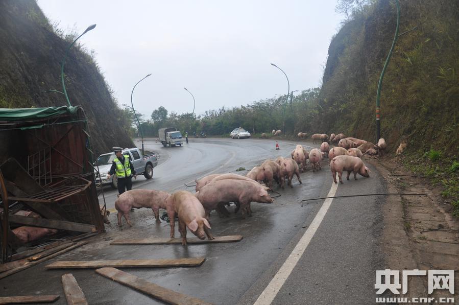 近日,普洱市一重型貨車在下坡轉(zhuǎn)彎過程中發(fā)生側(cè)翻,車上161頭生豬逃脫在公路上“撒歡”一個多小時。