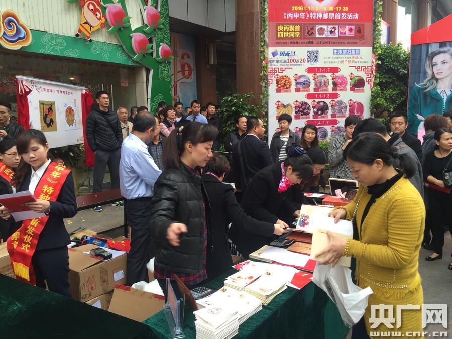 央廣網(wǎng)廈門1月5日消息(記者 馬寧)2016年是農(nóng)歷丙申猴年,喜歡集郵的朋友一定知道猴年對于集郵界的特殊意義,36年前,我國工藝美術(shù)大師黃永玉創(chuàng)造了生肖郵票的一個奇跡,當(dāng)時票面僅為8分錢一枚的金猴郵票在幾十年間價格不斷上漲,目前已經(jīng)漲到大約1萬2千元左右。時隔3個輪回,今年已經(jīng)92歲高齡的黃永玉再次執(zhí)筆,為即將到來的丙申猴年再度設(shè)計了一套猴票,今天這套猴票在全國各大城市發(fā)布,廈門郵政今天總共在市區(qū)四個點設(shè)立了發(fā)售現(xiàn)場,方便市民購買。