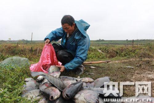 鄭良彬在欽州市欽南區(qū)康熙嶺鎮(zhèn)白雞村承包著一片70畝的魚塘,前幾天的低溫冰凍天氣,讓他養(yǎng)殖的近6萬斤羅非魚無一幸免的全部被凍死,一次性損失將近25萬元。他愁眉不展的告訴記者“從來都沒有這么嚴重過,前一天刮風的時候我們還投料,第二天早上三點多鐘下那個冰點才死的魚,這個魚一點一點浮上來,全部插在泥巴里面!
