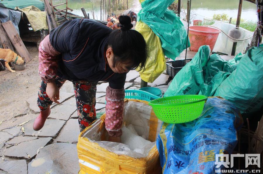 記者在欽州市欽南區(qū)康熙嶺鎮(zhèn)白雞村采訪時也看到,部分養(yǎng)殖戶拉來了大量冰袋,正將凍死的羅非魚進行冰凍處理。一名下鄉(xiāng)統(tǒng)計災(zāi)情的欽南區(qū)干部看著被凍死的羅非魚,便買了幾條!昂鼙阋耍荣I回去,能吃就吃,不能吃再丟掉!