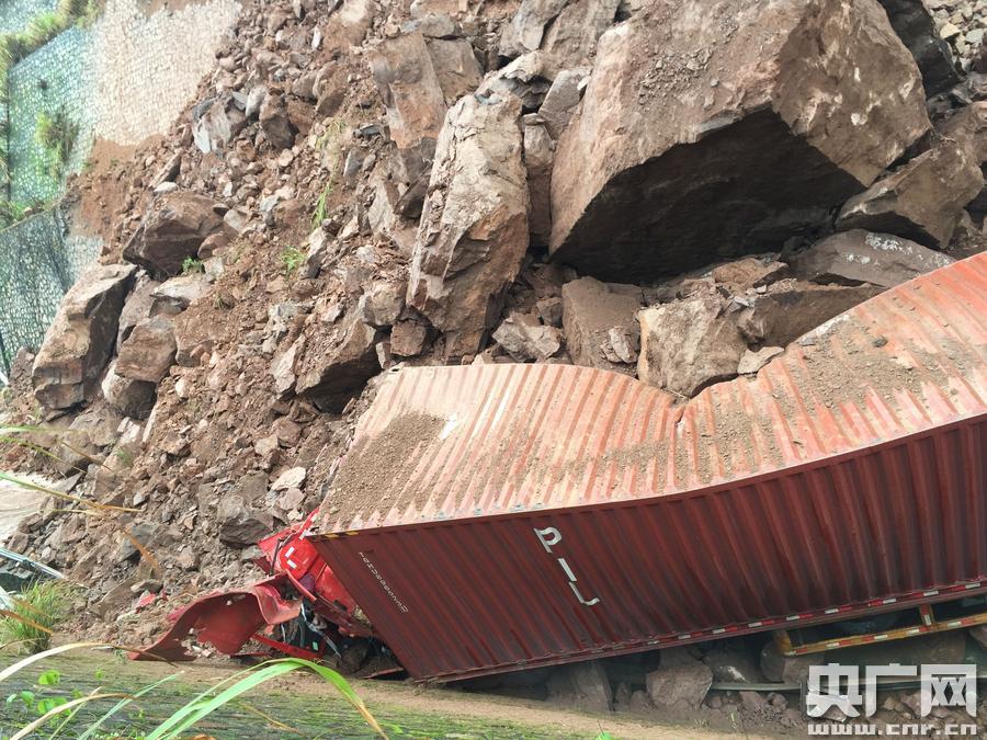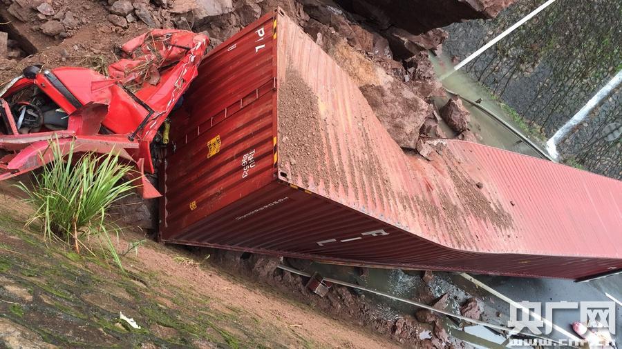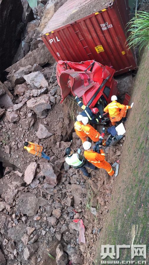 央廣網(wǎng)3月23日消息(記者謝元森)3月23日上午9時40分許,大廣高速公路江西贛定段3130KM西幅東坑隧道出口處(龍南縣境內(nèi))右側(cè)護坡突發(fā)山體坍塌,一輛懸掛“懸掛”車牌的大型掛車被土石擠壓。接到報警后,贛州消防、路政人員迅速到達現(xiàn)場開展救援,用切割機、千斤頂?shù)绕撇鹧b備,一點一點破拆車頭被車內(nèi)人員進行營救。