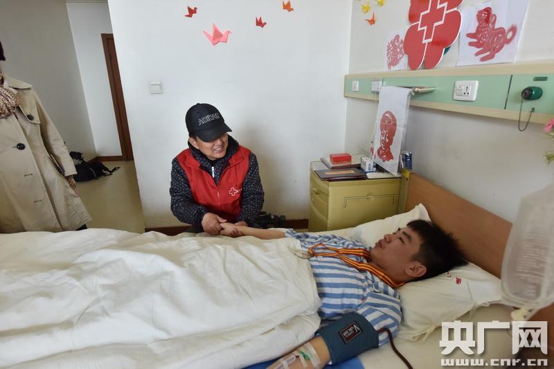 大連捐獻(xiàn)造血干細(xì)胞志愿者俱樂(lè)部的志愿者為已躺在病床3個(gè)小時(shí)的高添銘同學(xué)按摩