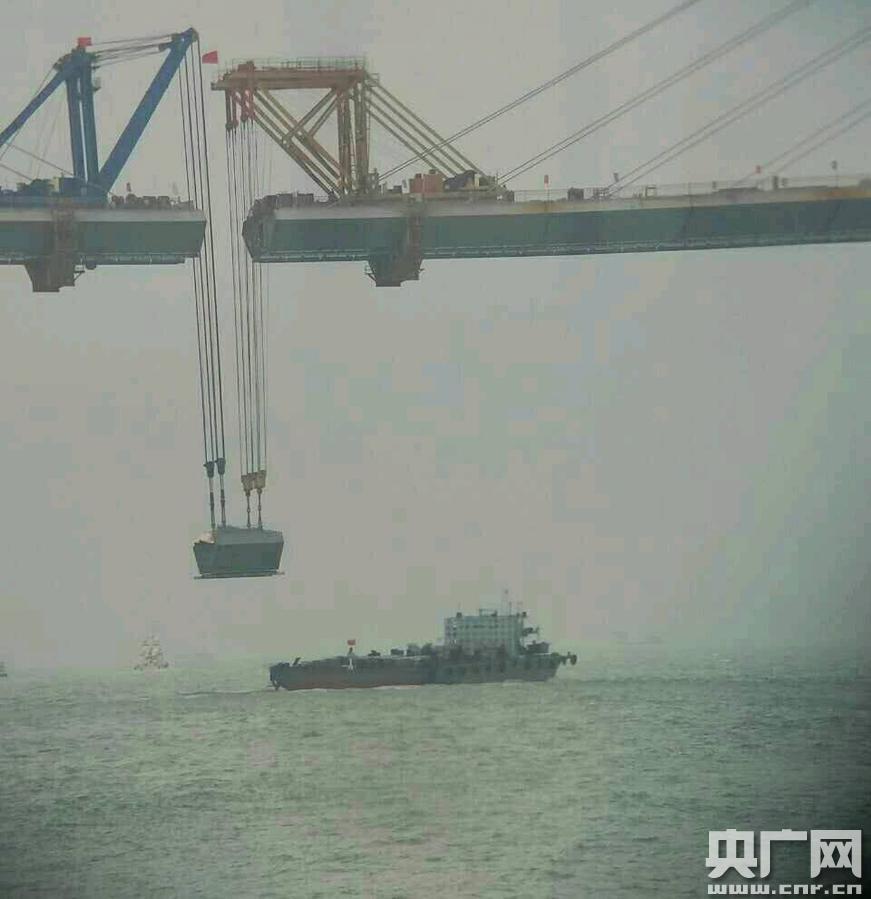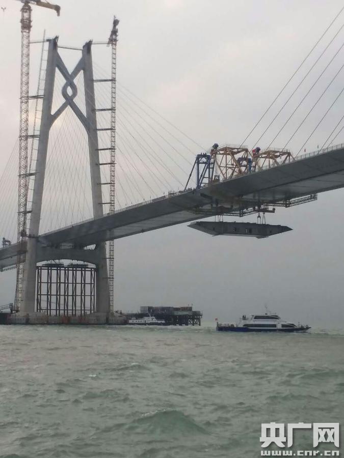 央廣網(wǎng)廣州4月12日消息(記者周羽 通訊員 成寶剛)4月11日20時,舉世矚目的港珠澳大橋建設(shè)又有新進(jìn)展——港珠澳大橋主橋最大跨徑青洲航道橋最后一片鋼箱梁完成吊裝順利“合龍”。