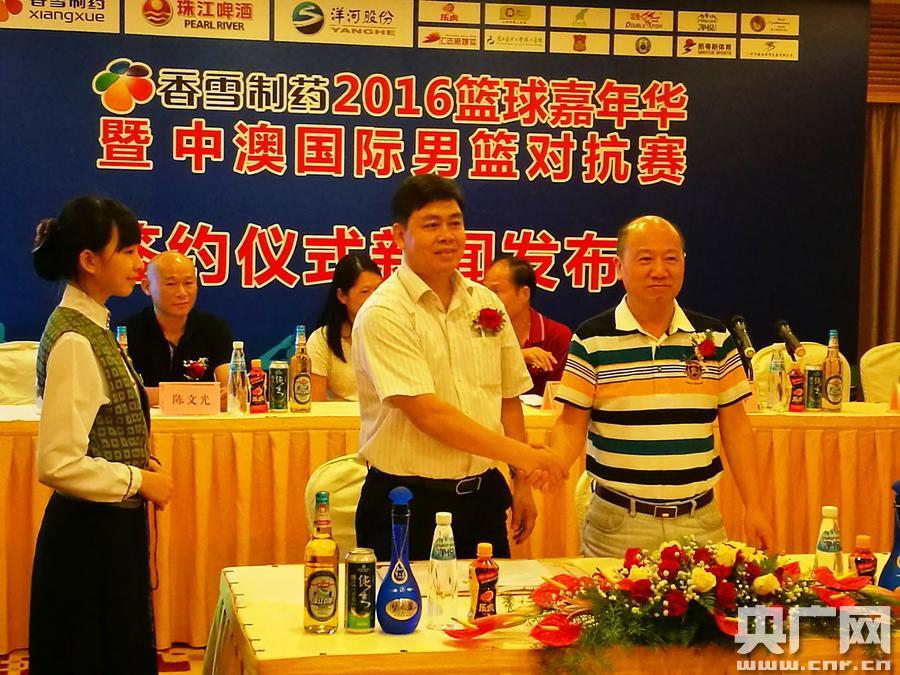 2016廣州籃球嘉年華暨中澳國(guó)際男籃對(duì)抗賽簽約儀式新聞發(fā)布會(huì)4月28日在廣州地中海國(guó)際酒店舉行