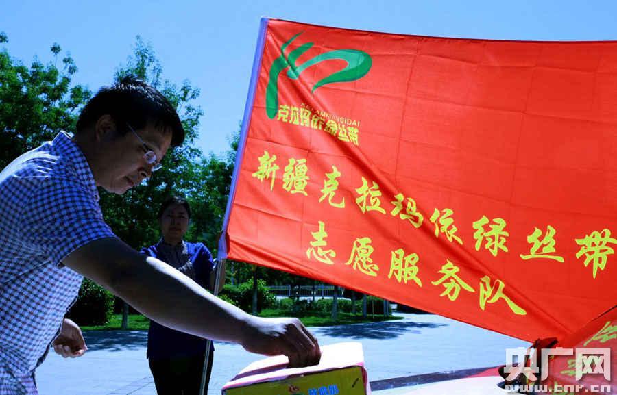 克拉瑪依綠絲帶成員獻愛心(周建玲 攝)
