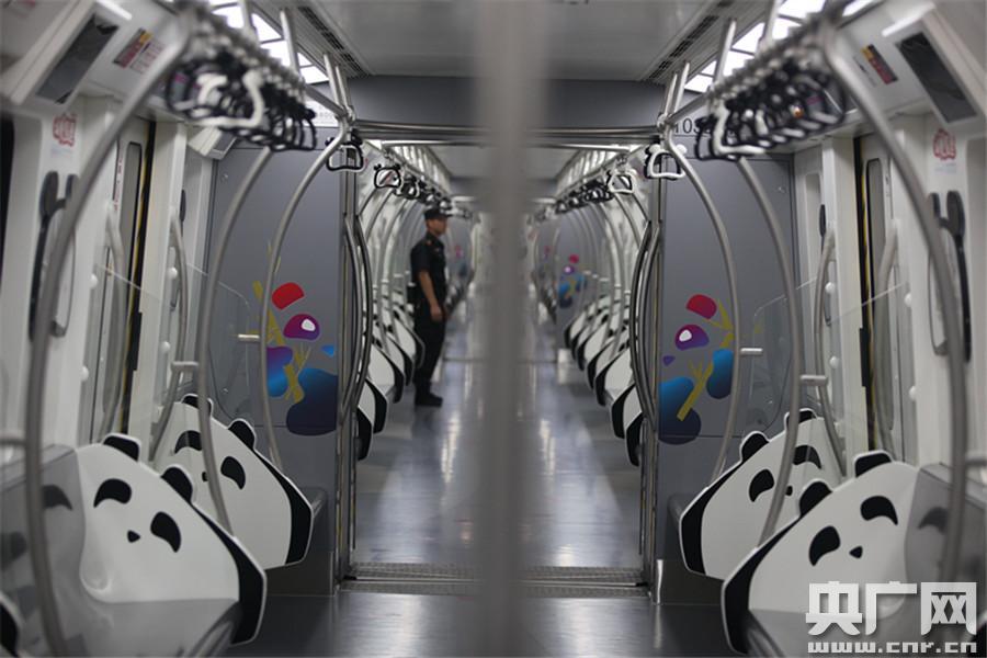 成都地鐵3號線熊貓主題列車“盼達”上的熊貓元素(成都地鐵供圖)