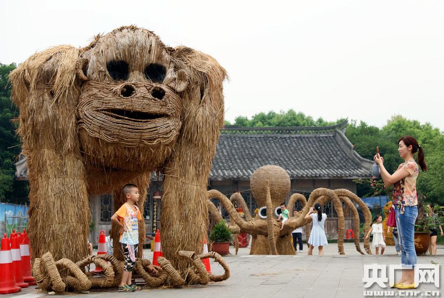 央廣網(wǎng)廣安9月8日消息(記者韓民權(quán) 廣安臺(tái)記者蘇坤明 王曉波)被陸游譽(yù)為中國“農(nóng)家樂”之源的盛產(chǎn)優(yōu)質(zhì)水稻而享有“銀岳池”美譽(yù)的四川廣安市岳池縣,以變廢為寶喜慶豐收為主題的首屆“稻草人魔幻藝術(shù)節(jié)”于9月3日在該縣“岳池農(nóng)家第一莊”開幕。此次“稻草人魔幻藝術(shù)節(jié)”展出的卡通人物、西游記、森林動(dòng)物王國等作品,由20多名民間藝人利用秋收后的稻草,歷時(shí)一月純手工編織而成。各種主題稻草造型,呈現(xiàn)了一場美侖美奐、多角度立體化頂級(jí)稻草原創(chuàng)造型的饕餮盛宴,讓人們盡情投入在田園稻草人的世界,集體憶童年,找回難忘的童年樂趣。