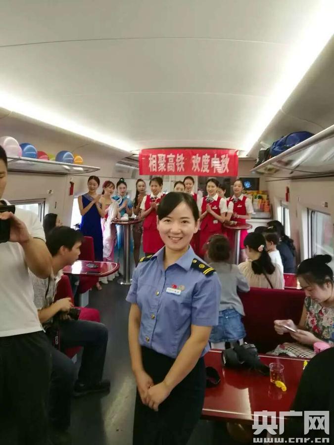 央廣網(wǎng)武漢9月15日消息(記者張毛清 通訊員劉衛(wèi)兵)今天(15日)是傳統(tǒng)節(jié)日中秋節(jié)。當(dāng)歸心似箭、回家團(tuán)聚的人們登上由武漢開往深圳北的G77次列車時,沒有料到會趕上武漢客運(yùn)段的乘務(wù)員們精心準(zhǔn)備的一場別樣中秋聯(lián)歡會。