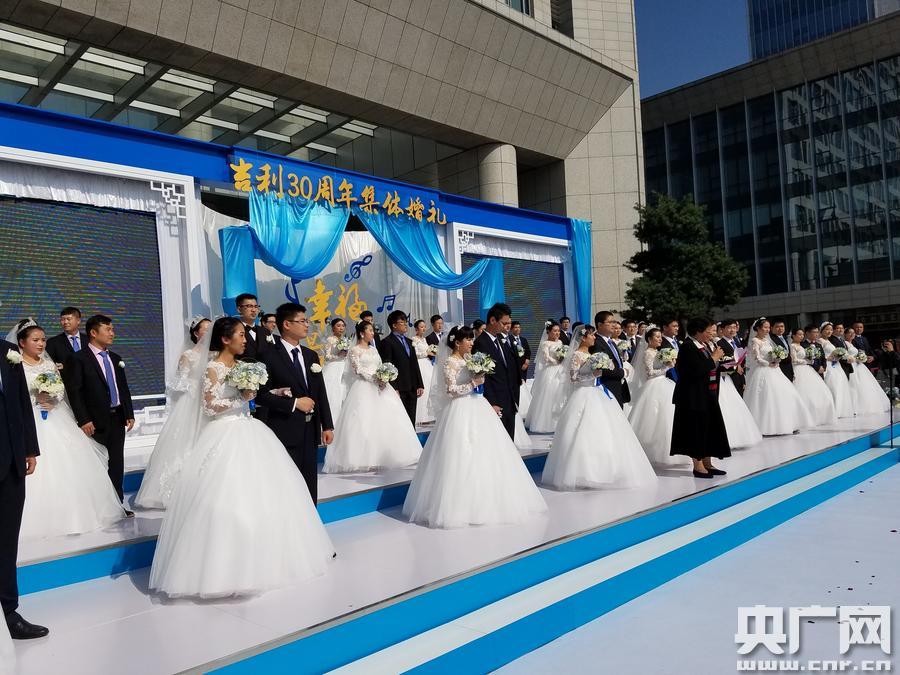 杭州吉利總部為30對新人舉行集體婚禮。(央廣網(wǎng)記者 張國亮 攝)
