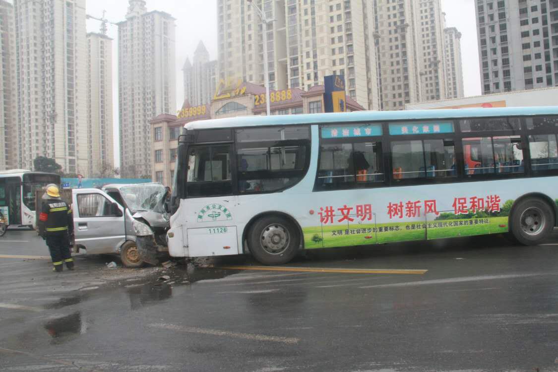 央廣網(wǎng)武漢1月18日消息(記者左艾甫 通訊員王剛)1月18日11時(shí)40分左右,湖北襄陽襄州區(qū)航空路襄陽東站進(jìn)口處發(fā)生一起車禍,一輛小貨車和公交車相撞,致貨車車頭變形,駕駛員被困,公交車上一名乘客受輕傷。