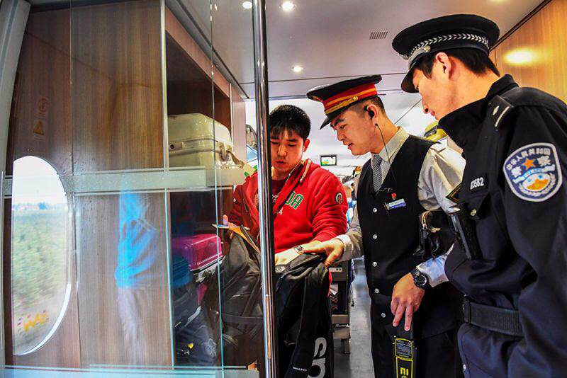 10:43,車到濰坊站。從濰坊到下一站即墨北要運行52分鐘,這段時間也是規(guī)定的工作人員吃飯時間。10:45,列車開出濰坊站,陳科與乘警一起按照作業(yè)程序查驗全列的危險品,回到餐車時,已經(jīng)11:05。他拿出昨天從家里帶來的飯菜,準(zhǔn)備吃飯。“陳車長,四車廂一名旅客身份證和車票找不到了,您過來看一下。”對講機里,響起乘務(wù)員焦急的聲音。陳科把打開的飯菜放在桌上,從九車廂趕到四車廂,旅客正焦急地嘀咕:上車的時候還驗過車票和身份證,怎么這會兒就沒了?陳科問旅客去過什么地方,旅客說上車后就在這睡覺,哪里也沒去。陳科不緊不慢地聽完,請旁邊的旅客讓開,先是趴下用手機上的手電筒照了照座椅下面,沒找到,又把坐椅上面的坐墊掀了起來,然后淡定的跟旅客說,在這兒呢。見到車票,周圍的旅客都笑了。
