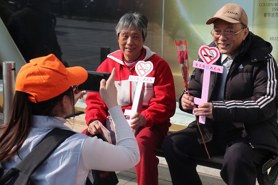 外灘、人民廣場、陸家嘴、徐家匯、五角場……今天,在上海市區(qū)的十個重要商圈,來自上海高校的大學(xué)生控?zé)熤驹刚,隨機為路過的情侶送上玫瑰花等小禮品,倡導(dǎo)他們支持新版控?zé)煑l例的規(guī)定,為了心愛的人的健康幸福,共創(chuàng)無煙上海。志愿者還邀請這些情侶在鏡頭前表達(dá)這樣的理念,并為他們拍下相片和視頻,作為幸福時刻的記錄。這樣的幸福表達(dá),也將通過網(wǎng)絡(luò)傳達(dá)給更多的人。