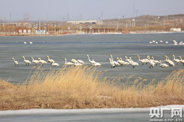 央廣網(wǎng)呼和浩特3月21日消息(記者鄭穎 攝影華瑞鋒)三月下旬的內(nèi)蒙古邊疆,冰雪尚未融盡,內(nèi)蒙古伊金霍洛旗東紅海子濕地公園迎來大量北歸的候鳥,遺鷗家族悠閑漫步。濕地上,或三四只成群,或者十幾只一起,時而悠然踱步,時而梳理羽毛,時而翩翩起舞,場面頗為華美。候鳥不是濕地的“常住居民”,他們會為自己選擇環(huán)境良好、安全無憂的棲息地。候鳥活動,被認為是濕地生態(tài)好壞重要標識,能夠讓人最直觀的了解湖泊河流等水域自然環(huán)境的變化。