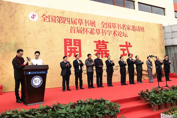 此次活動由中國書法家協(xié)會、湖南省文化廳、湖南省文聯(lián)與中共永州市委、永州市人民政府聯(lián)合主辦。全國政協(xié)常委、中國書協(xié)主席蘇士澍在開幕式致辭中表示,本次草書展以植根傳統(tǒng)、鼓勵創(chuàng)新、多樣包容為創(chuàng)作導向,意在引領草書創(chuàng)作方向,展示當代草書創(chuàng)作成就,發(fā)現(xiàn)新人,推出精品。湖南省政府副省長向力力說,湖南是文化大省,有著悠久的歷史積淀和深厚的文化底蘊,書法藝術、出版、傳媒等領域在全國有著較強的影響力。草書展系列活動是永州強力推進“文化強市”戰(zhàn)略,落實“文化強國”,實現(xiàn)文化大發(fā)展大繁榮的具體舉措,對弘揚書法文化藝術,推動傳統(tǒng)文化的傳承與發(fā)展,增強國家“文化軟實力”、提升人民“文化自信”具有重要意義。