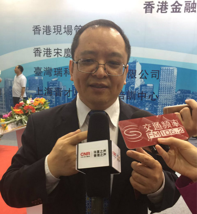 深圳市司法局局長(zhǎng)蔣溪林在展位前接受采訪
