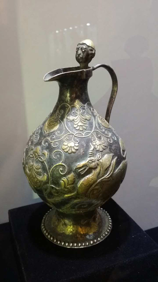 唐代早期銀鎏金瑞獸蔓草紋執(zhí)壺