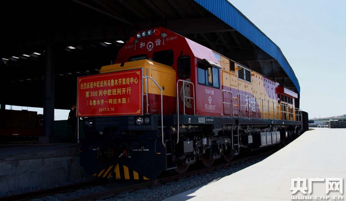 當(dāng)天,恰逢中歐班列烏魯木齊集結(jié)中心開行300列。12時(shí)10分,在汽笛長鳴聲中,X9081次貨物列車從中歐班列烏魯木齊集結(jié)中心開出,駛向哈薩克斯坦阿拉木圖,這是中歐班列烏魯木齊集結(jié)中心自2016年5月投入運(yùn)營后開行的第300趟西行班列,該趟班列的成功開行,為剛剛閉幕的“一帶一路”國際合作高峰論壇獻(xiàn)上了一份特殊的禮物。