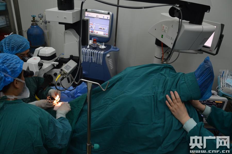 央廣網(wǎng)重慶6月16日消息(記者劉湛 通訊員李春梅)“醫(yī)生,我能看到你的手了,比手術(shù)前清楚多了,謝謝,謝謝!”60歲的李大志(化名)老人患有嚴(yán)重的白內(nèi)障,病情本身比較嚴(yán)重,加上他還患有嚴(yán)重的強(qiáng)制性脊柱炎,脖子不能動,也無法平躺,被多家醫(yī)院拒絕。6月14日下午,第三軍醫(yī)大學(xué)新橋醫(yī)院眼科將老人的雙腳“墊高”1米,身體與雙腿幾乎成直角,頭部被放平后,眼科專家才為其左眼實(shí)施白內(nèi)障超聲乳化術(shù)。經(jīng)過18分鐘的精心手術(shù),手術(shù)獲得成功,老人在手術(shù)臺上高興地跟醫(yī)生道謝。 家住貴州遵義桐梓縣新站鎮(zhèn)的李大志老人,30年前因?yàn)橐淮我馔馐軅驗(yàn)闆]錢醫(yī)治,只簡單處理了一下,后來他的整個脊柱就慢慢變形,直到現(xiàn)在不能直立行走、頸部不能動、上半身完全僵硬。5年前,他的右眼慢慢看不見了。20多天前,他的左眼開始痛,無法看清楚東西,到當(dāng)?shù)蒯t(yī)院求醫(yī),因?yàn)樗纳眢w特殊原因,無法做相關(guān)檢測,醫(yī)生就建議到重慶的大醫(yī)院醫(yī)治。于是家人將其送到重慶,多家醫(yī)院因?yàn)樯眢w情況特殊而被拒,最后家人抱著最后一線希望來到第三軍醫(yī)大學(xué)新橋醫(yī)院眼科。 “怎么辦,沒法查視力,沒法用儀器!痹诘谌娽t(yī)大學(xué)新橋醫(yī)院眼科,接診的醫(yī)生們?yōu)槿绾谓o李大志老人做檢查而愁苦。該科室主任袁容娣教授聽說這個特殊病人后,停下忙碌的門診,來到李大志老人身邊。她被眼前老人的身體情況驚呆了!疤彀,這情況太糟糕了。”老人右眼已經(jīng)失明,左眼也僅能看到20厘米左右遠(yuǎn),嚴(yán)重的白內(nèi)障,并且還有葡萄膜炎,如果不手術(shù),老人左眼僅有的一點(diǎn)視力會很快消失,左眼也會跟右眼一樣失明。但他的身體情況完全不符合基本的手術(shù)條件——頭部平放,老人躺下時,頭部與身體成90度直角,頭完全不能接觸床,身體唯一能放在床上的是一部分背部。為了給老人尋找一絲手術(shù)機(jī)會,袁容娣教授叫來科室其他專家,針對他的身體情況進(jìn)行了討論,并讓醫(yī)生試著將其腳上舉差不多九十度角,覺得頭部墊上東西應(yīng)該是有機(jī)會滿足手術(shù)的條件的。最后,決定留下了這個罕見的病人。 6月14日下午1:40,李大志老人迎來了他的手術(shù)。 “抬,抬高一點(diǎn),還要高一點(diǎn),還是不行,下面放一根凳子,然后再放被子……”在手術(shù)室,醫(yī)生將李大志老人扶到手術(shù)床上,醫(yī)生找來早已準(zhǔn)備好的兩床被褥,準(zhǔn)備將老人的腿部抬高,以降低老人頭部,可兩床被褥高度不高,又找來一沓床單,足足有50厘米高了,還是不夠,又找來一根凳子,然后將被褥、床單墊在凳子上,差不多支撐腿部凳子高度有1米了,這樣把雙腿擱在上面,然后在頸部墊了一沓被單,老人的頭部才保持在一個平面上,主刀專家劉翔教授根據(jù)病人的情況調(diào)試好了手術(shù)儀器位置。 老人差不多只有肩部支撐床上,他兩只手緊緊地握住凳子的腳,努力保持最好的姿勢好讓醫(yī)生手術(shù)。為了確保雙腿不滑落下來,手術(shù)室專門安排了工作人員扶著老人的雙腿。 “老人家,你能支撐得住嗎?不行就告訴我們!贬t(yī)生問道!翱梢缘,我可以堅(jiān)持的! 李大志老人非常肯定地回答到。 在確定老人的姿勢后,眼科劉翔教授和醫(yī)生們快速地消毒、拆開手術(shù)包、手術(shù)……希望快一點(diǎn)為老人手術(shù),他們知道老人僅靠肩部支撐著,這需要很強(qiáng)的毅力的。時間一分一秒地過去了,大家都捏著一把汗,害怕手術(shù)中途老人堅(jiān)持不下來而中斷手術(shù),可整個手術(shù)中,老人沒哼一聲!袄先思,能看見我的手嗎?”18分鐘后,當(dāng)劉翔專家用手指在他眼前晃動時,他說看得清,比手術(shù)前更清楚了。這時,在手術(shù)室的每一位醫(yī)生都松了一口氣。 據(jù)劉翔教授介紹,李大志老人的手術(shù)難度很大,普通人整個手術(shù)只需要10分鐘,而這個就是擺一個能手術(shù)的姿勢,用了大概十多分鐘。并且老人本身的病情很重,手術(shù)前為老人做術(shù)前散瞳準(zhǔn)備時,發(fā)現(xiàn)用藥物沒法將其瞳孔散大,正常人通過藥物是可以將瞳孔擴(kuò)大到七八毫米的,而他僅有1毫米,這大大增加手術(shù)難度。整個手術(shù)18分鐘,由于病人長時間非正常狀態(tài)躺著也非常累,醫(yī)生們配合也非常緊湊,手術(shù)非常成功。 劉教授提醒市民,葡萄膜炎是強(qiáng)直性脊柱炎的一種常見眼部病變,容易引起并發(fā)性白內(nèi)障,建議患者及早就診治療,擇期手術(shù),定期復(fù)查,可大大減少失明的風(fēng)險。(李春梅攝) -