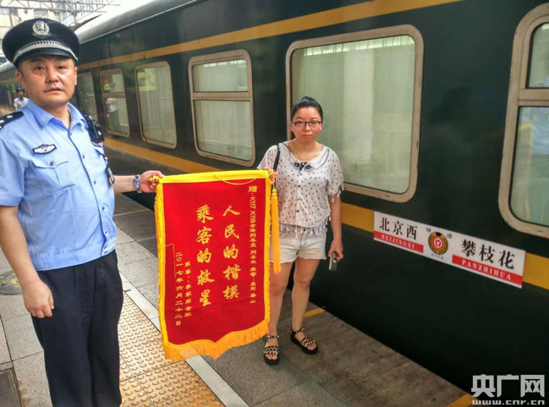 6月28日,該警組再次登乘K117列車(chē)時(shí),李老漢的女兒將一面錦旗交到扈剛手中,十分感謝乘警對(duì)老人的無(wú)私照顧。