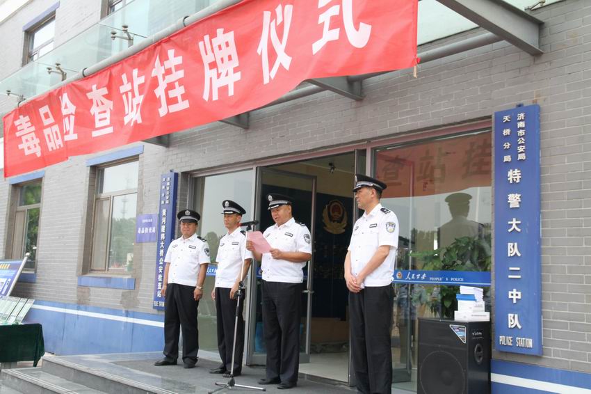 濟(jì)南建立“毒品檢查站”是貫徹國(guó)家禁毒委部署的“5.14”堵源截流專項(xiàng)機(jī)制的重要舉措,是全省三年禁毒人民戰(zhàn)爭(zhēng)“掃毒戰(zhàn)役——查毒斷源”專項(xiàng)行動(dòng)的主要內(nèi)容,也是落實(shí)山東省公安廳、濟(jì)南市公安局基層基礎(chǔ)建設(shè)三年攻堅(jiān)戰(zhàn)的具體措施!岸酒窓z查站”設(shè)立在公安檢查站內(nèi),能夠充分利用公安檢查站的地理位置優(yōu)勢(shì),充分發(fā)揮巡警、特警、交警在公開查緝方面的經(jīng)驗(yàn),做好毒品的公開查緝工作。