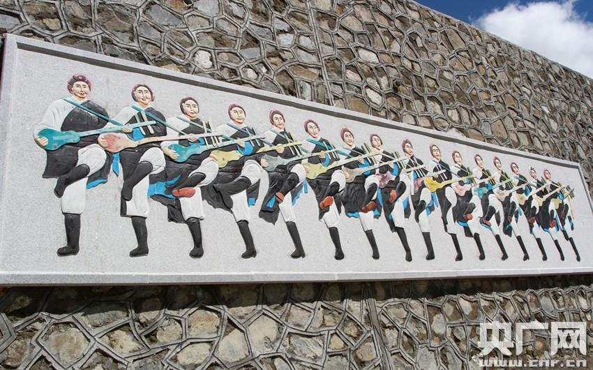 公路邊獨(dú)具特色的藏文化元素浮雕(央廣網(wǎng)記者 普布次仁 攝) -