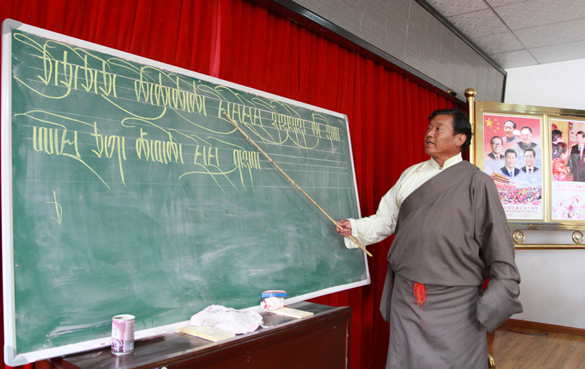 隨著朗朗書聲,來自江洛康薩社區(qū)5組的居民瓊達正在社區(qū)區(qū)委會里跟著社區(qū)里的中老年人在這里學(xué)習藏文。她說:“通過簡單的學(xué)習小到可以解決她們記個電話號碼、簽字這些日常所需,學(xué)好了更是能讀書提高自己!