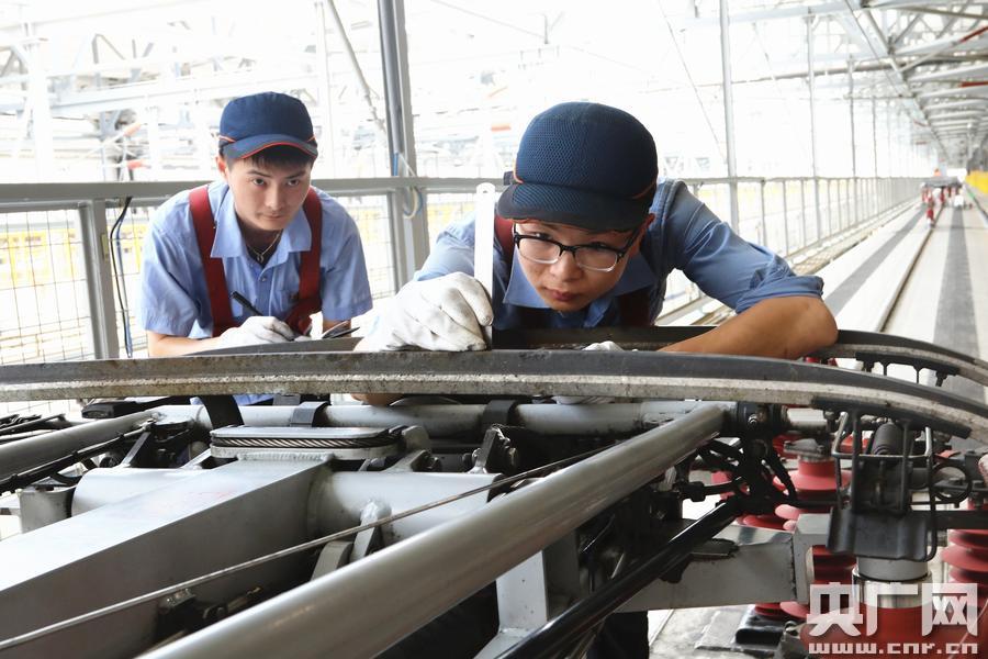 成都動(dòng)車段:受電弓檢修,護(hù)衛(wèi)動(dòng)車“生命線”。(周兵 攝)