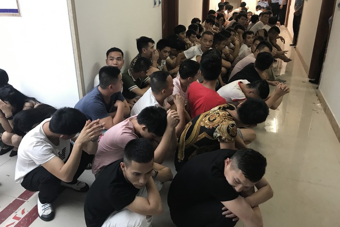 當(dāng)日凌晨,興業(yè)縣公安局禁毒大隊(duì)民警接到舉報(bào)稱:城區(qū)的“利和酒店?yáng)|方皇宮俱樂部”包廂內(nèi)有多人吸食毒品。經(jīng)初查,該俱樂部4個(gè)包廂確有聚眾吸毒嫌疑,人數(shù)多達(dá)百人以上。上午10時(shí)許,50多名警力趕赴事發(fā)地,當(dāng)場(chǎng)將4個(gè)包廂的共130名涉毒人員(男100人,女30人)控制,并在各個(gè)包廂內(nèi)繳獲毒品可疑物K粉34小包共計(jì)24.92克、開心粉38小包凈重65.78克、冰毒4小包凈重8.84克、搖頭丸2粒凈重0.37克。經(jīng)現(xiàn)場(chǎng)對(duì)該130名青年男女進(jìn)行尿液檢測(cè),其中有108人的尿檢結(jié)果呈氯胺酮及甲基苯丙胺陽(yáng)性。