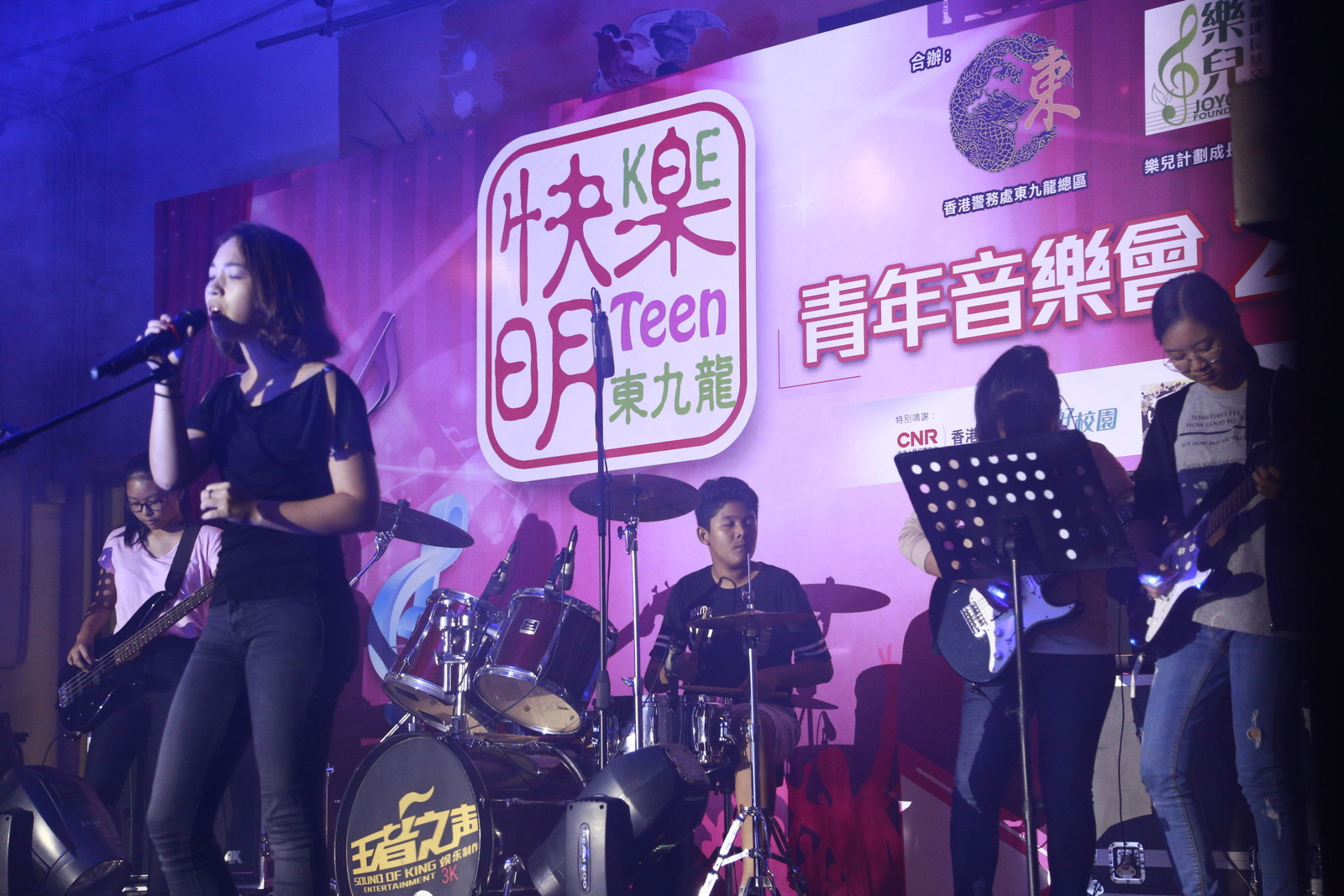 主禮嘉賓有東九龍總區(qū)指揮官麥國(guó)兆助理警務(wù)處長(zhǎng)、樂兒計(jì)劃成長(zhǎng)基金副主席陳李妮女士、香港道教聯(lián)合會(huì)圓玄學(xué)院第三中學(xué)李世基校長(zhǎng)及快樂明TEEN委員會(huì)主席陳耀雄先生,在熱鬧的氣氛中,揭幕禮上揮動(dòng)結(jié)他,音樂會(huì)正式開始,當(dāng)日將軍澳、秀茂坪、觀塘及黃大仙警區(qū)的指揮官均有到場(chǎng)支持。