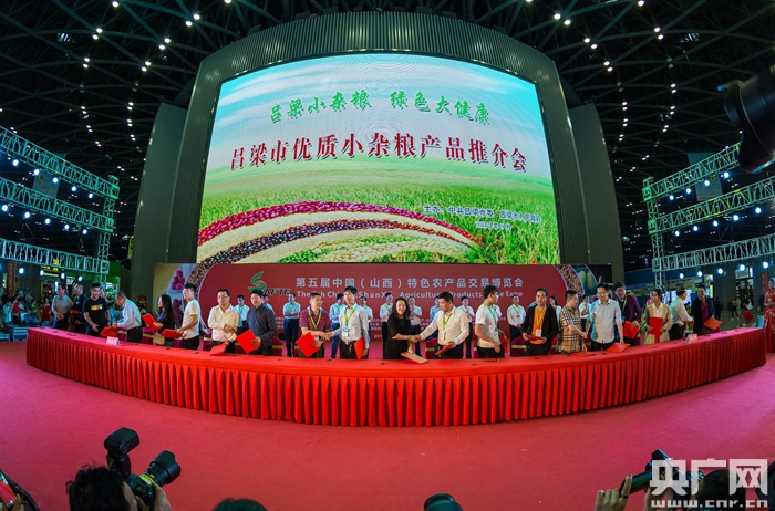 央廣網(wǎng)山西太原9月20日消息(記者岳旭輝)在山西太原正在舉行的第五屆中國(山西)特色農(nóng)產(chǎn)品交易博覽會上,呂梁市優(yōu)質(zhì)小雜糧產(chǎn)品全數(shù)精彩亮相,呂梁市長王立偉率13個縣市區(qū)有關(guān)負責(zé)人登臺推薦特色農(nóng)產(chǎn)品,承諾進一步落實優(yōu)惠政策,完善扶持措施,繼續(xù)創(chuàng)造審批最少、流程最優(yōu)、體制最順、機制最活、效率最高、服務(wù)最好的投資環(huán)境,誠邀有識之士到呂梁考察、投資。