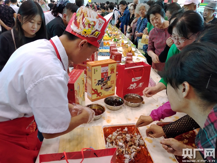 現(xiàn)場展出的柳林碗團、嵐縣土豆、石樓蜂蜜、興縣小米、交城駿棗等呂梁農(nóng)特產(chǎn)品吸引了大批參觀者(央廣網(wǎng)發(fā) 馮帥 攝)