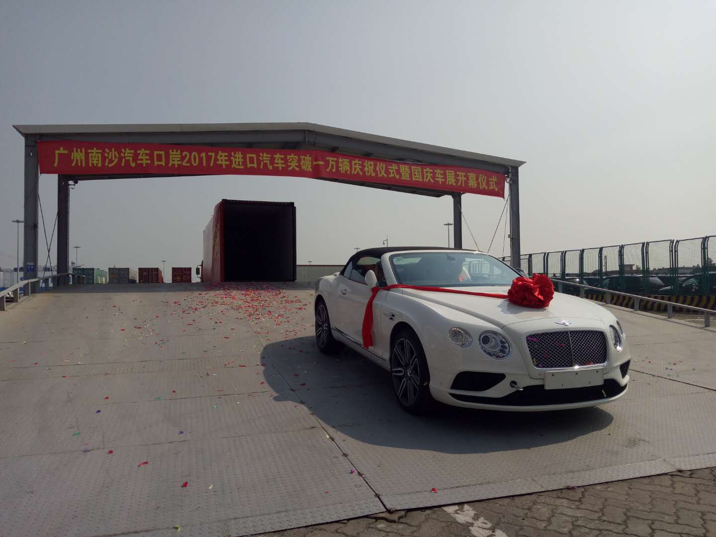 央廣網(wǎng)廣州9月28日消息(記者周羽 通訊員蘇小妹 鄭志珣)9月28日上午9時50分,隨著一輛賓利轎車從集裝箱卸車平臺緩緩卸下,南沙汽車口岸在正式通關(guān)運營三年零一個月后,本年度進口整車量首次突破萬輛大關(guān)。記者從廣州港集團了解到,受益于廣東自由貿(mào)易試驗區(qū)和平行進口試點等政策紅利,南沙汽車口岸大力拓展和延伸進口整車物流市場。9月28日,南沙汽車口岸2017年累計進口整車數(shù)量達到10306輛,同比增長183%,遠超去年全年進口整車總量8284輛,創(chuàng)下年度進口量歷史新高,成為華南最大的平行進口汽車口岸、全國僅次于天津的平行進口汽車第二大口岸。