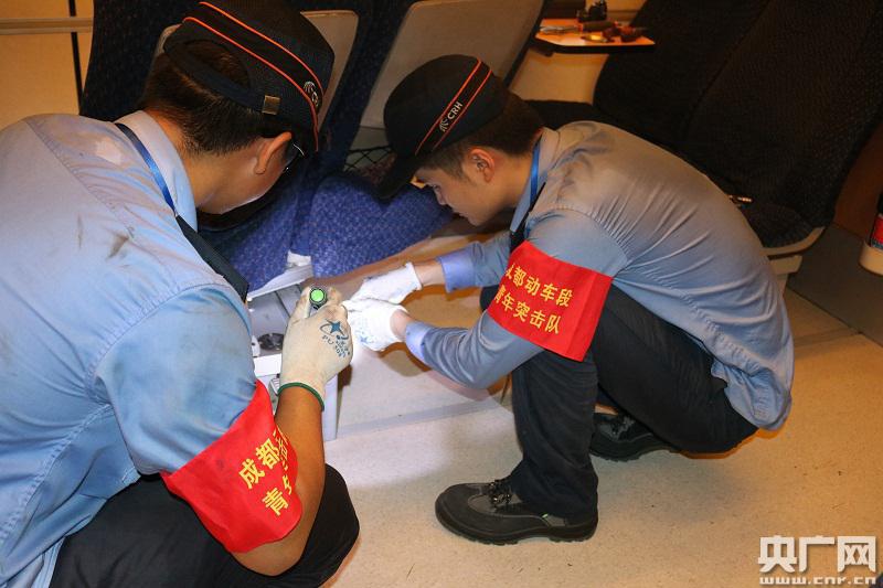 成都動(dòng)車段青年突擊隊(duì)開(kāi)展動(dòng)車客服設(shè)施整修。(央廣網(wǎng)發(fā) 文帥攝)