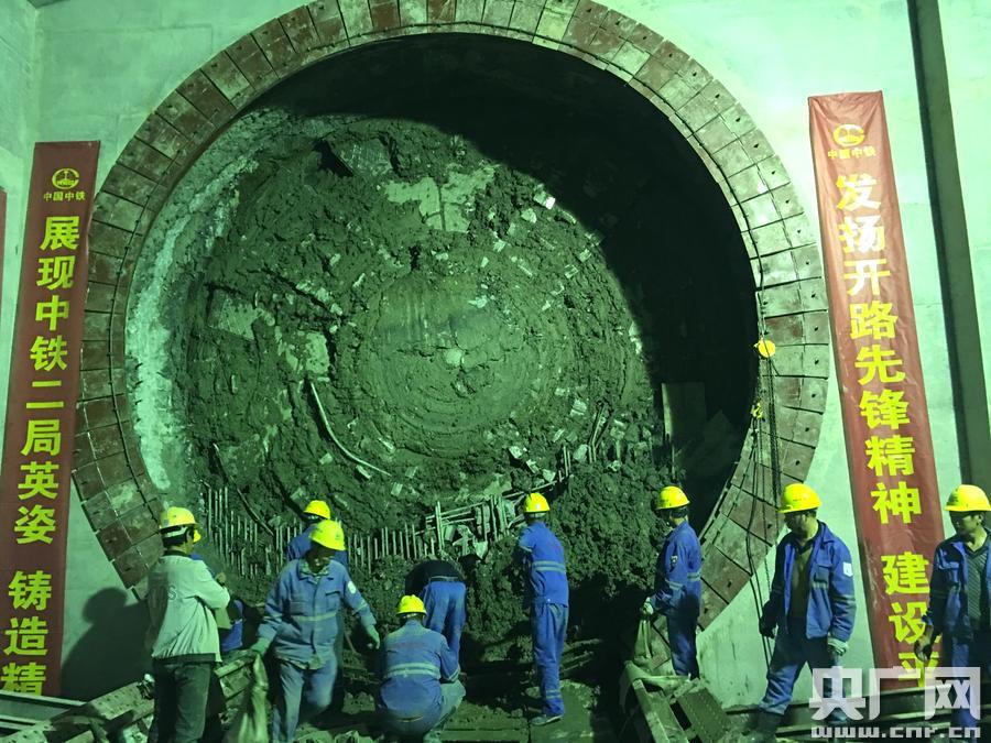 陳家營(yíng)站大河埂右線隧道順利貫通(央廣網(wǎng)發(fā) 袁露攝)