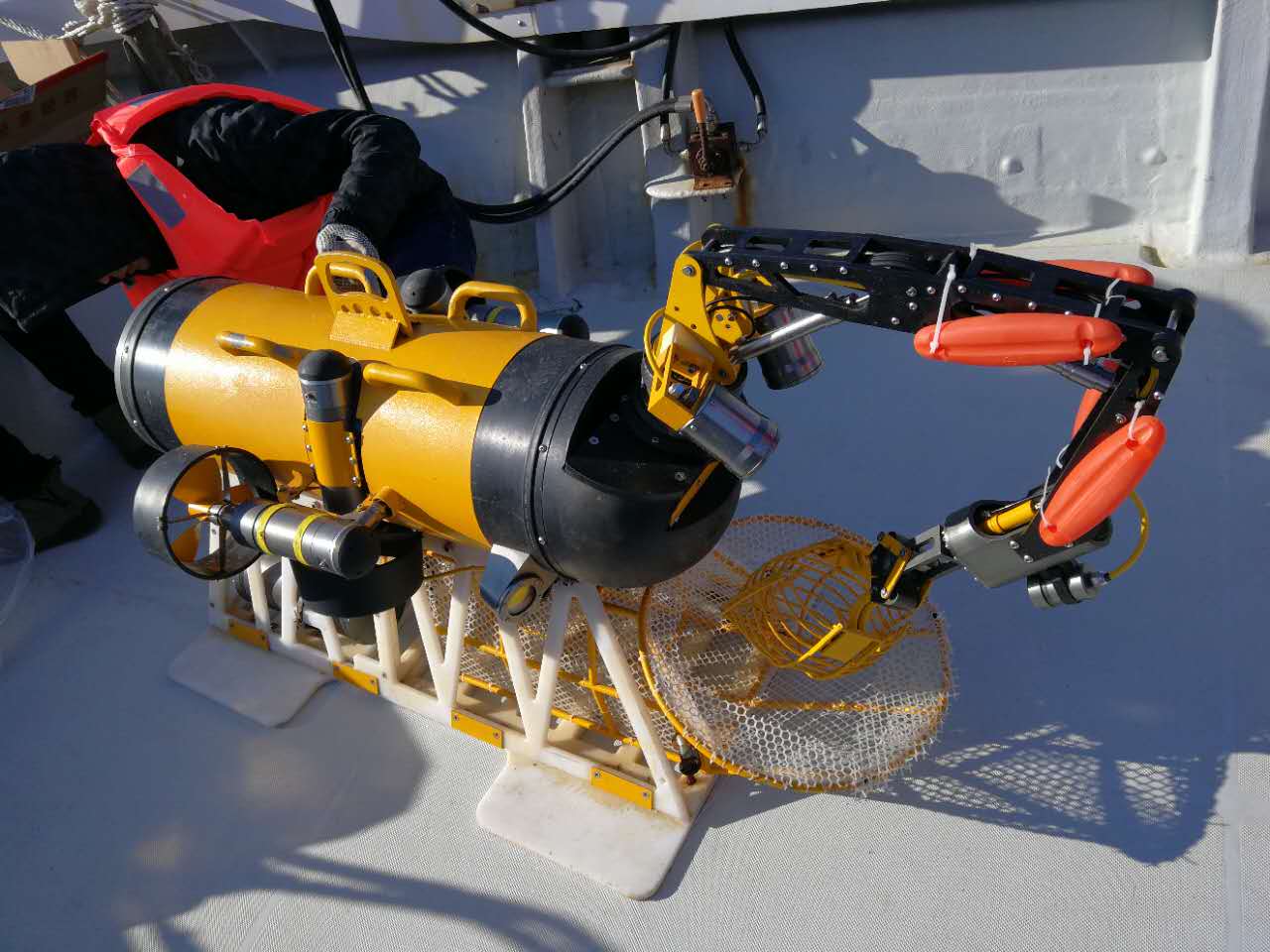 科研人員在船上一邊觀看著顯示器,一邊遙控機(jī)器人在水下行動(dòng)。機(jī)器人身上自帶攝像頭,操作人員在顯示器上可以清晰的看到水下的情況。機(jī)器人來(lái)到了20多米深的海底,經(jīng)過(guò)一番尋找,機(jī)器人找了海參,通過(guò)操作者的遙控指揮,機(jī)器人將海參捕獲,并放入袋中。完成海參采捕任務(wù)后,水下智能機(jī)器人浮上海面,重新放回船上,試驗(yàn)成功。
