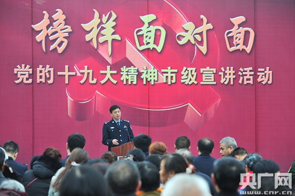 據(jù)了解,為更好地推動十九大精神家喻戶曉,重慶市組織各地、各行業(yè)領(lǐng)域的先進典型組成“榜樣面對面”黨的十九大精神宣講團,深入城鄉(xiāng)社區(qū)、基層單位,向群眾面對面地宣講十九大精神。為此,市公安局組織陳冰、樊勁松、冉義智等13名全市公安機關(guān)先進典型組建“榜樣面對面”十九大精神宣講團市公安局分團,深入基層一線與群眾開展十九大精神面對面宣講,立足工作崗位和學(xué)習(xí)生活實際,聯(lián)系百姓身邊發(fā)生的變化,結(jié)合群眾普遍關(guān)心關(guān)切的問題,生動形象地宣傳黨的十九大精神。