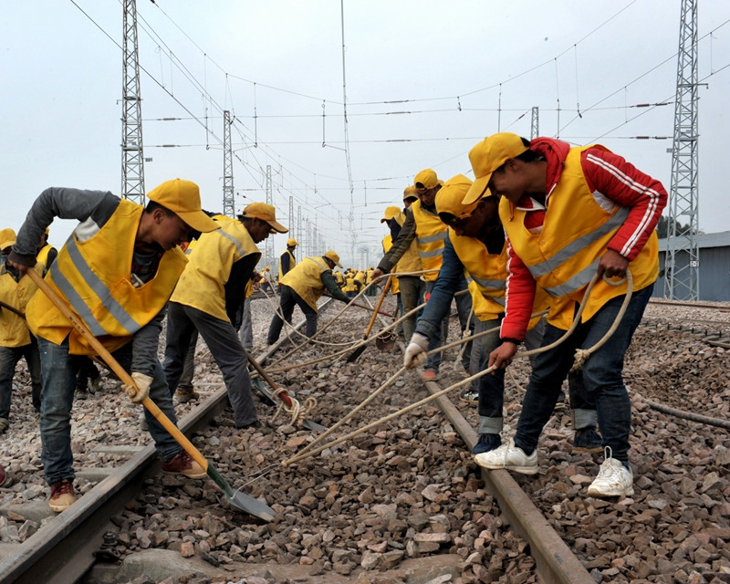 中鐵十一局三公司組織近千名施工人員線路龍口進(jìn)行撥接。張偉明攝影