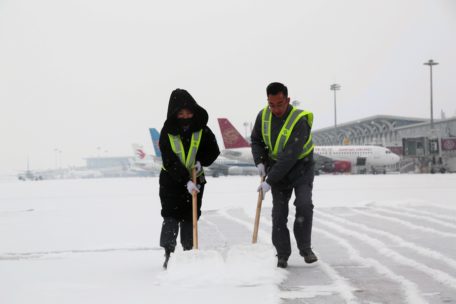 截至目前,場(chǎng)務(wù)隊(duì)利用航前、航后和航班間隙,共開(kāi)展跑道、滑行道除冰雪作業(yè)5次,累積出動(dòng)車輛25車次,投入人力50余人次;機(jī)務(wù)工程隊(duì)共對(duì)61架航班開(kāi)展航空器除冰雪作業(yè),累積使用除冰液混合液約28000升,有力保證了航空器飛行安全;各保障單位對(duì)本部門機(jī)坪責(zé)任區(qū)域共開(kāi)展兩次人工清掃作業(yè),確保了機(jī)坪地面運(yùn)行安全。為保障旅客順利出行,機(jī)場(chǎng)方面積極與運(yùn)輸公司溝通協(xié)調(diào),及時(shí)補(bǔ)充運(yùn)力運(yùn)送旅客。截至4日下午14時(shí),共出動(dòng)保障車輛33輛,發(fā)送巴士95班次,累計(jì)運(yùn)送旅客3200余人次。并為進(jìn)出港行李加蓋雨布,防止旅客行李浸濕。針對(duì)晚到旅客,及時(shí)增開(kāi)安檢通道和值機(jī)柜臺(tái),確保旅客順利出行。針對(duì)航延旅客,及時(shí)告知旅客航班狀態(tài),提前在登機(jī)口設(shè)立航班延誤信息通告牌,并增加人工廣播頻次;提前聯(lián)系酒店,為航延旅客提前留足房間;主動(dòng)聯(lián)系航空公司,協(xié)調(diào)客票退改簽相關(guān)事宜,積極為取消航班的旅客做好后續(xù)服務(wù)保障。