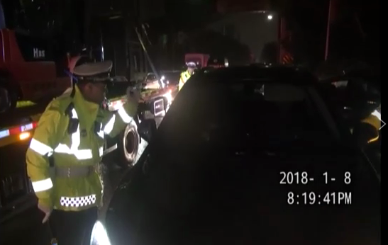 1月8日晚8時(shí)許,佛山交警在一環(huán)公路東線輔道開展查處酒駕專項(xiàng)行動(dòng),一部湘M牌小車駛?cè)肟c(diǎn),民警將車攔下,并示意司機(jī)開窗配合酒精檢測(cè),但駕駛?cè)司o鎖車門,拒不打開車窗接受檢查。