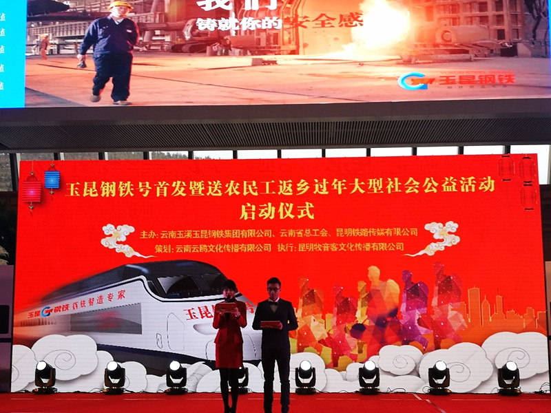 為了本次公益活動,玉昆鋼鐵集團專門出資買斷了兩個車廂的二等座位票,免費贈送給滬昆高鐵沿途沿線從昆明前往貴陽、長沙、南昌的進城務(wù)工人員們,資助他們乘坐高鐵列車平安、快樂的返鄉(xiāng)與親人團聚。